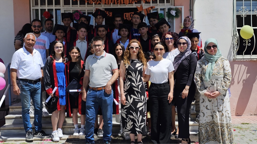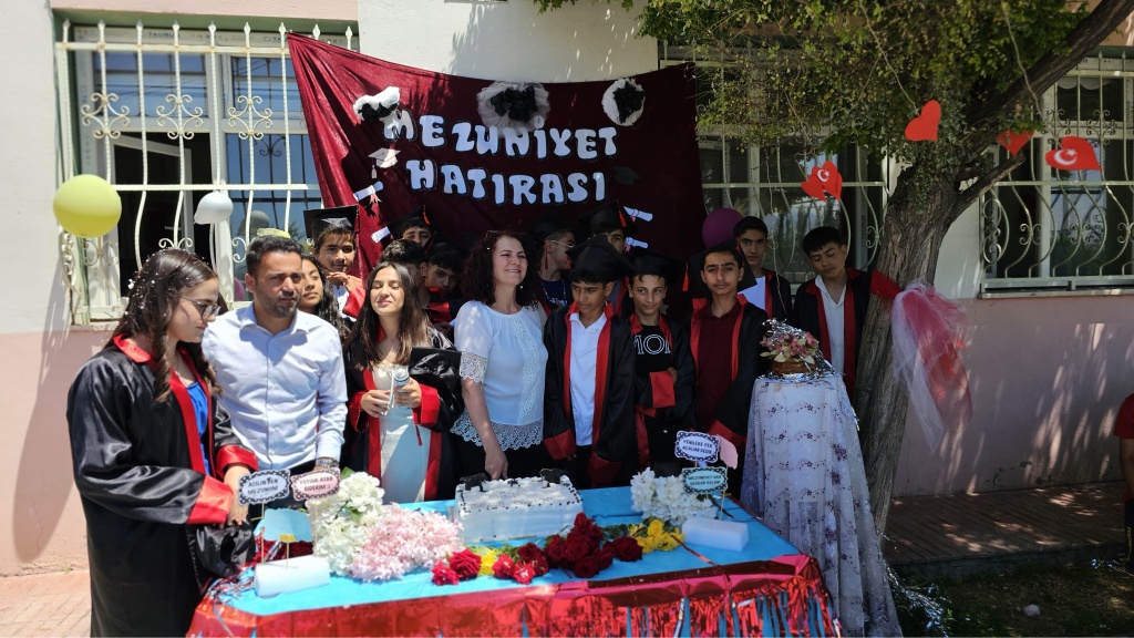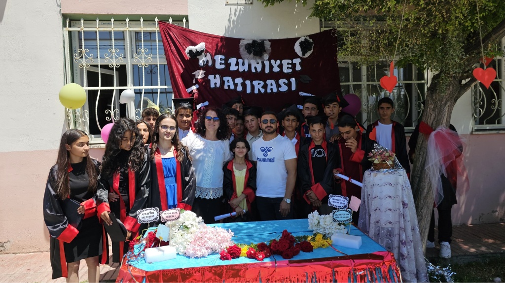 2024/2025 Eğitim Öğretim yılı mezuniyet törenimiz 8/A Sınıfı Rehber Öğretmeni Aygül SARIHAN Rehberliğinde Coşku ile kutlandı.Saygı duruşu ve İstiklal Marşimızın okunması ile başlayan tören,Okul Müdürü Talip VURAL'ın konuşmaı ile devam etti.Okul Müdürümüz yaptığı konuşmasında öğrencilerimize bundan sonraki hayatlarında başarılar diledi.Mezuniyet pastasının kesilmesinde sonra öğrencilerimiz, aileleri ve öğretmenleri ile hatıra fotoğrafı çekindi.Öğrencilerimize bundan sonraki hayatlarında başarılar dileriz.